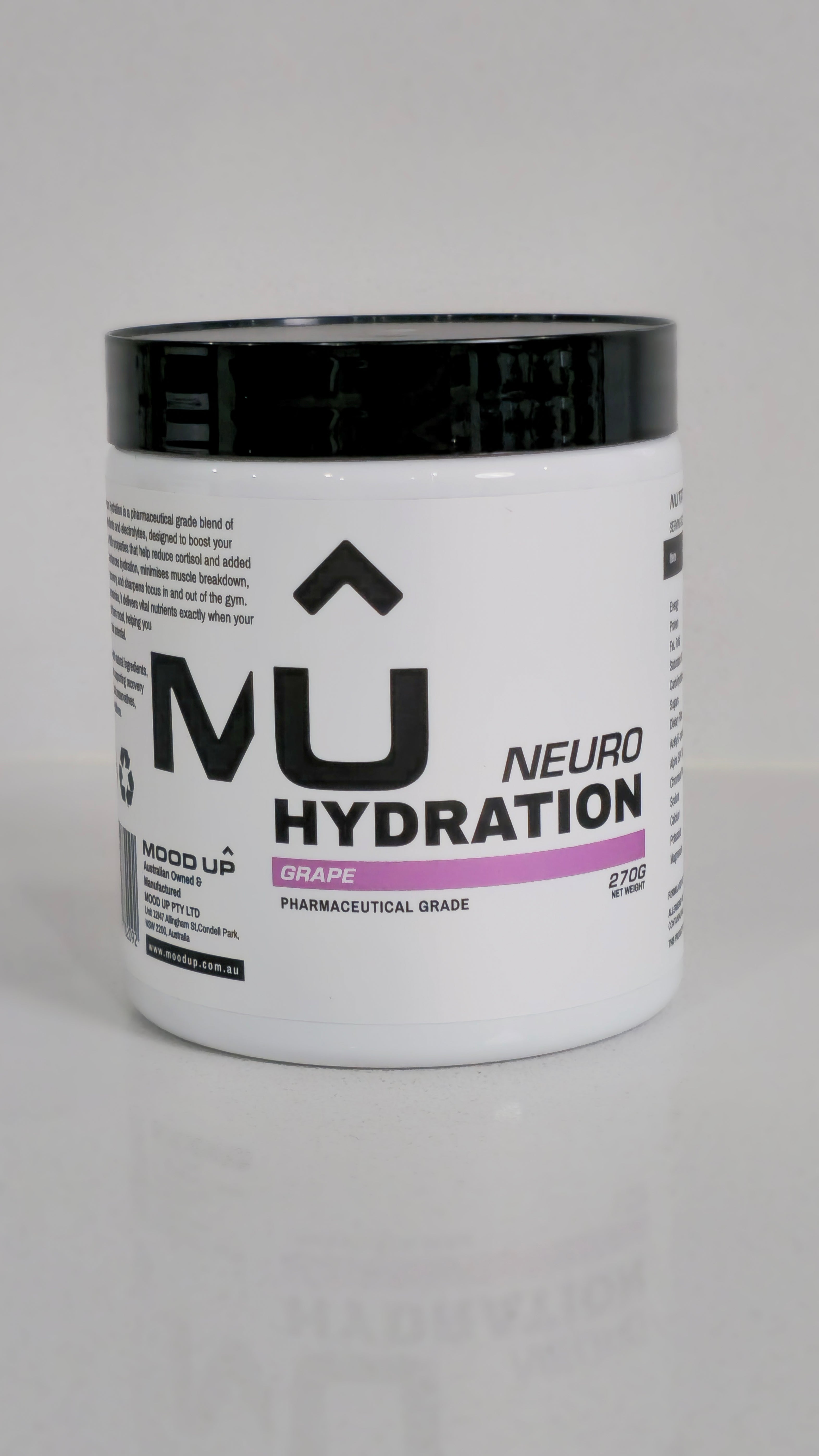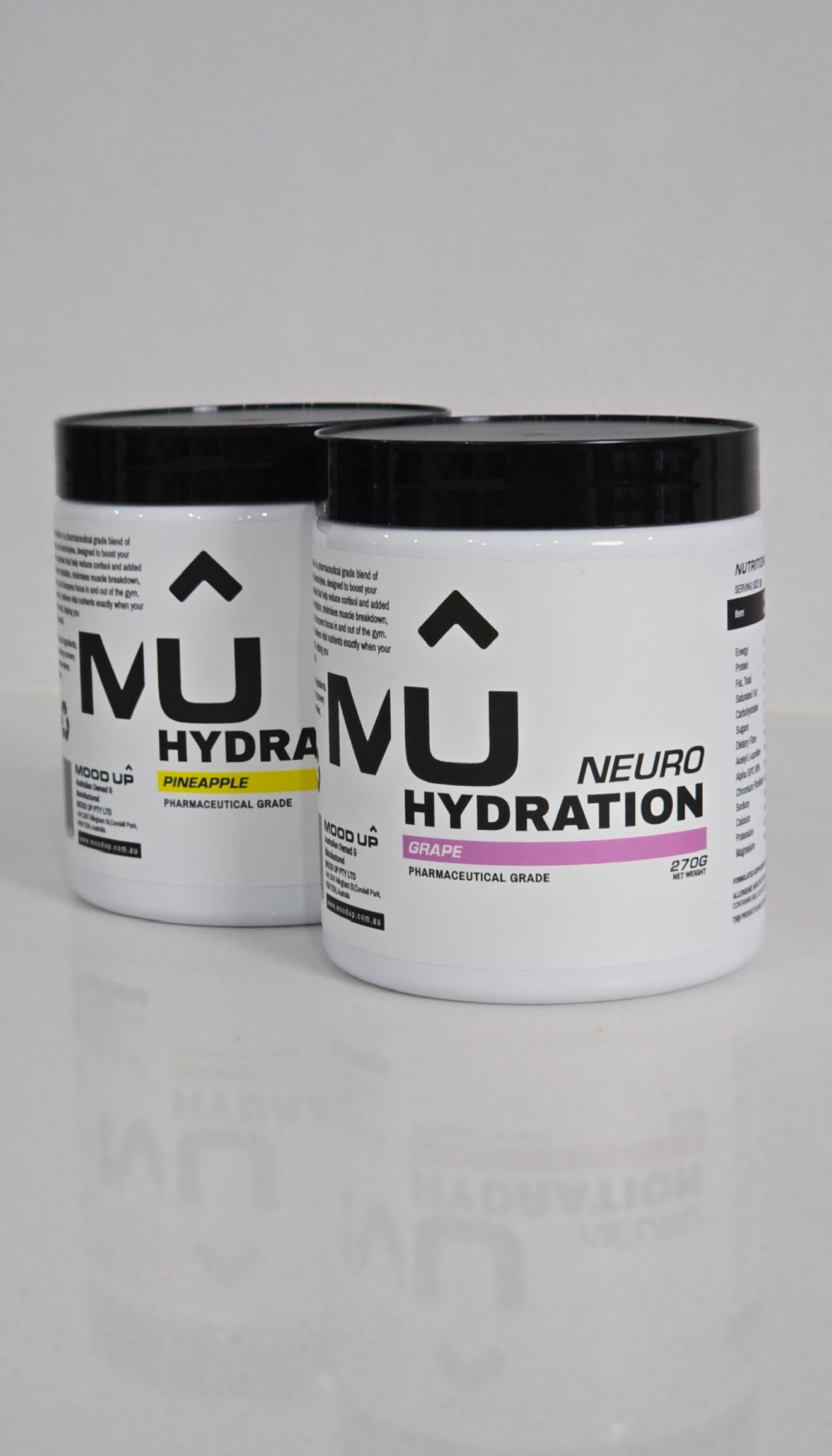 Mood Up Neuro Hydration is a pharmaceutical grade blend of premium ingredients and electrolytes, designed to boost your performance. With properties that help reduce cortisol and added nootropics, it enhances hydration, minimises muscle breakdown, accelerates recovery, and sharpens focus in and out of the gym.