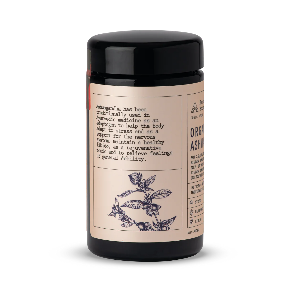 Ashwagandha (Withania somnifera) is a revered restorative tonic herb traditionally used in Ayurvedic medicine to promote balance and overall wellbeing. Known for its adaptogenic properties, it helps the body cope with stress, supports the nervous system, and improves sleep quality. Ashwagandha is also used to enhance libido, rejuvenate vitality, and alleviate general feelings of fatigue. Additionally, research has shown that it improves memory, cognitive function, endurance, muscle strength, size, and recovery.